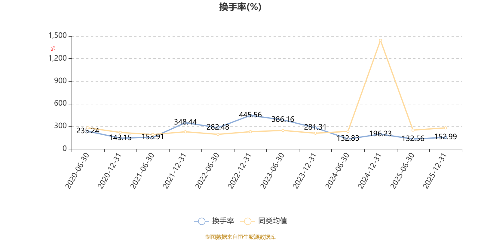 截至2025年12月31日,基金最近一年换手率约275.05%,持续2年低于同类均值。