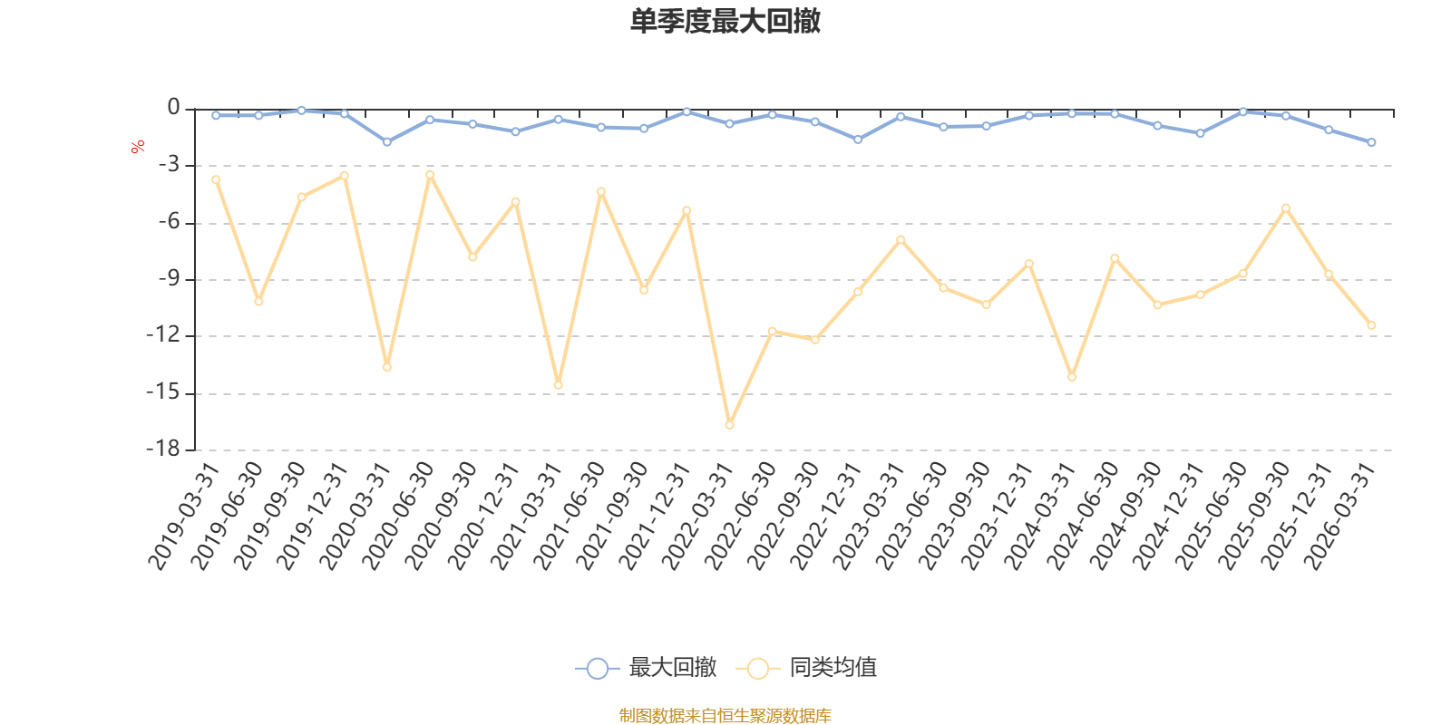 截至4月8日,基金近三年最大回撤为1.82%,同类可比基金排名10/1264。单季度最大回撤出现在2026年一季度,为1.77%。