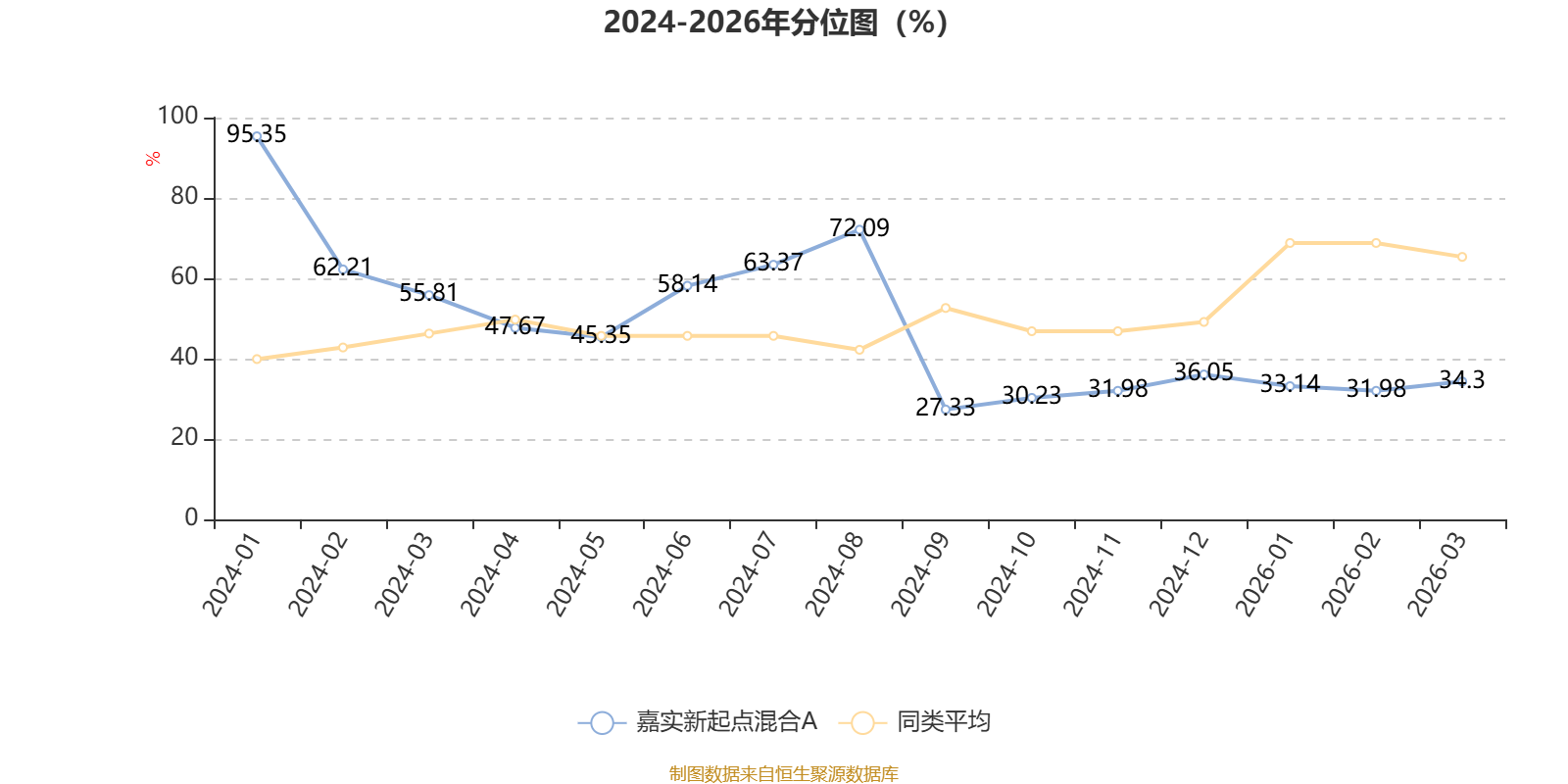 通过所选区间该基金净值增长率分位图,可以观察该基金与同类基金业绩比较情况。图为坐标原点到区间内某时点的净值增长率在同类基金中的分位数。