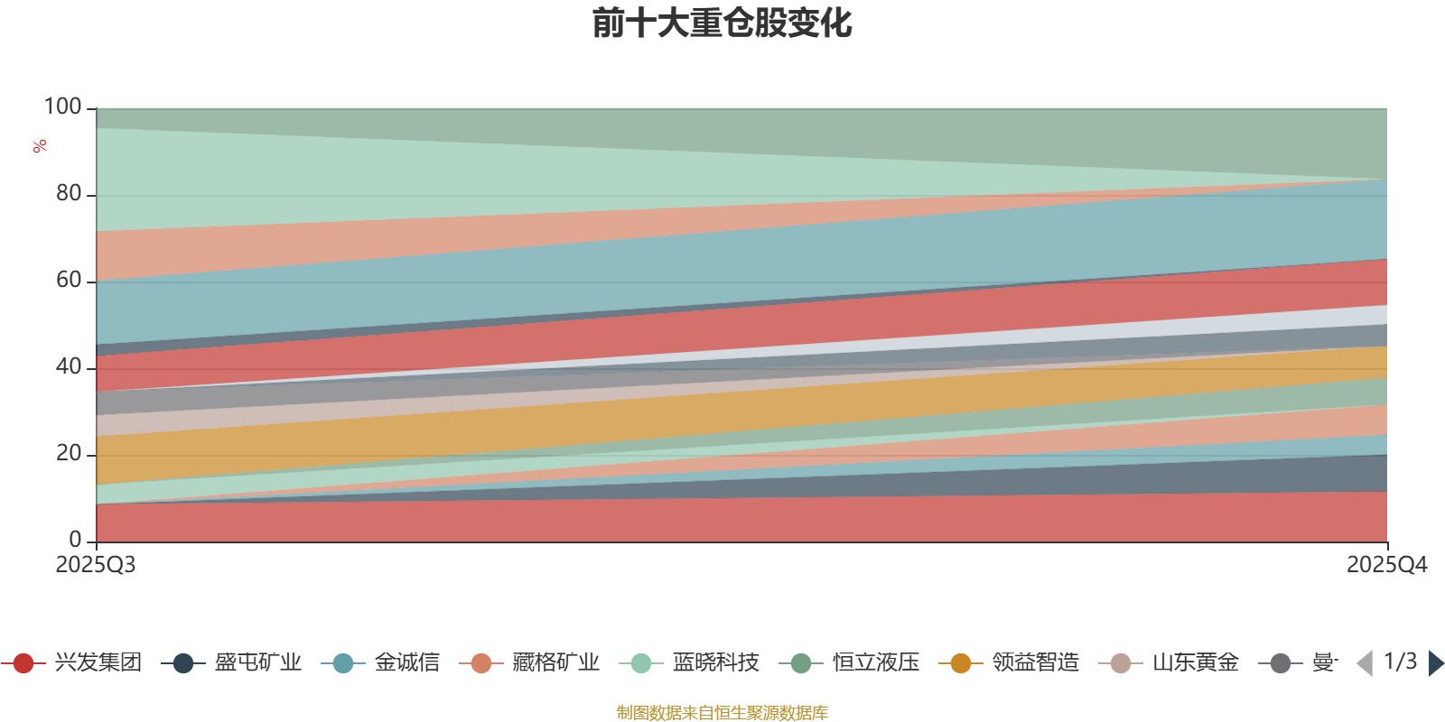 该基金持股集中度较高。截至2025年末,基金十大重仓股分别是洛阳钼业、兴发集团、紫金矿业、盛屯矿业、领益智造、藏格矿业、恒立液压、中国铝业、金诚信、湖南黄金。