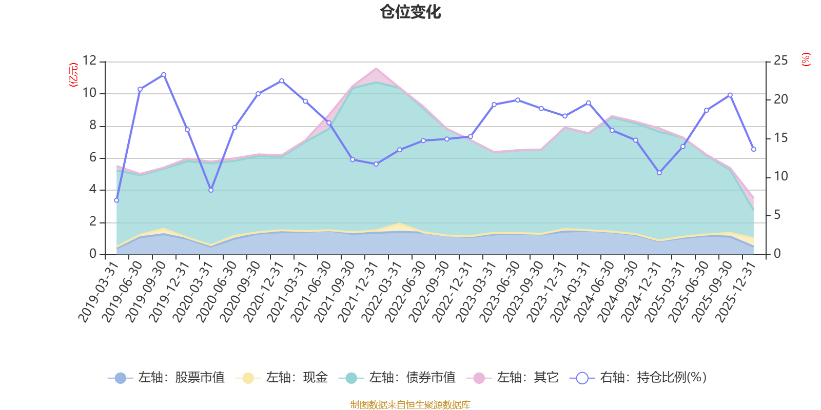 据定期报告数据统计,近三年平均股票仓位为17.03%,同类平均为72.57%。2019年三季度末基金达到23.29%的最高仓位,2019年一季度末最低,为7.02%。