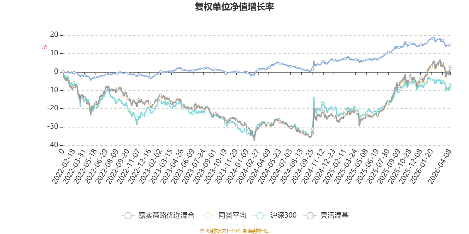 截至4月8日,嘉实策略优选混合近三个月复权单位净值增长率为-1.68%,位于同类可比基金846/1287;近半年复权单位净值增长率为-0.57%,位于同类可比基金905/1286;近一年复权单位净值增长率为9.72%,位于同类可比基金1062/1286;近三年复权单位净值增长率为12.63%,位于同类可比基金664/1286。