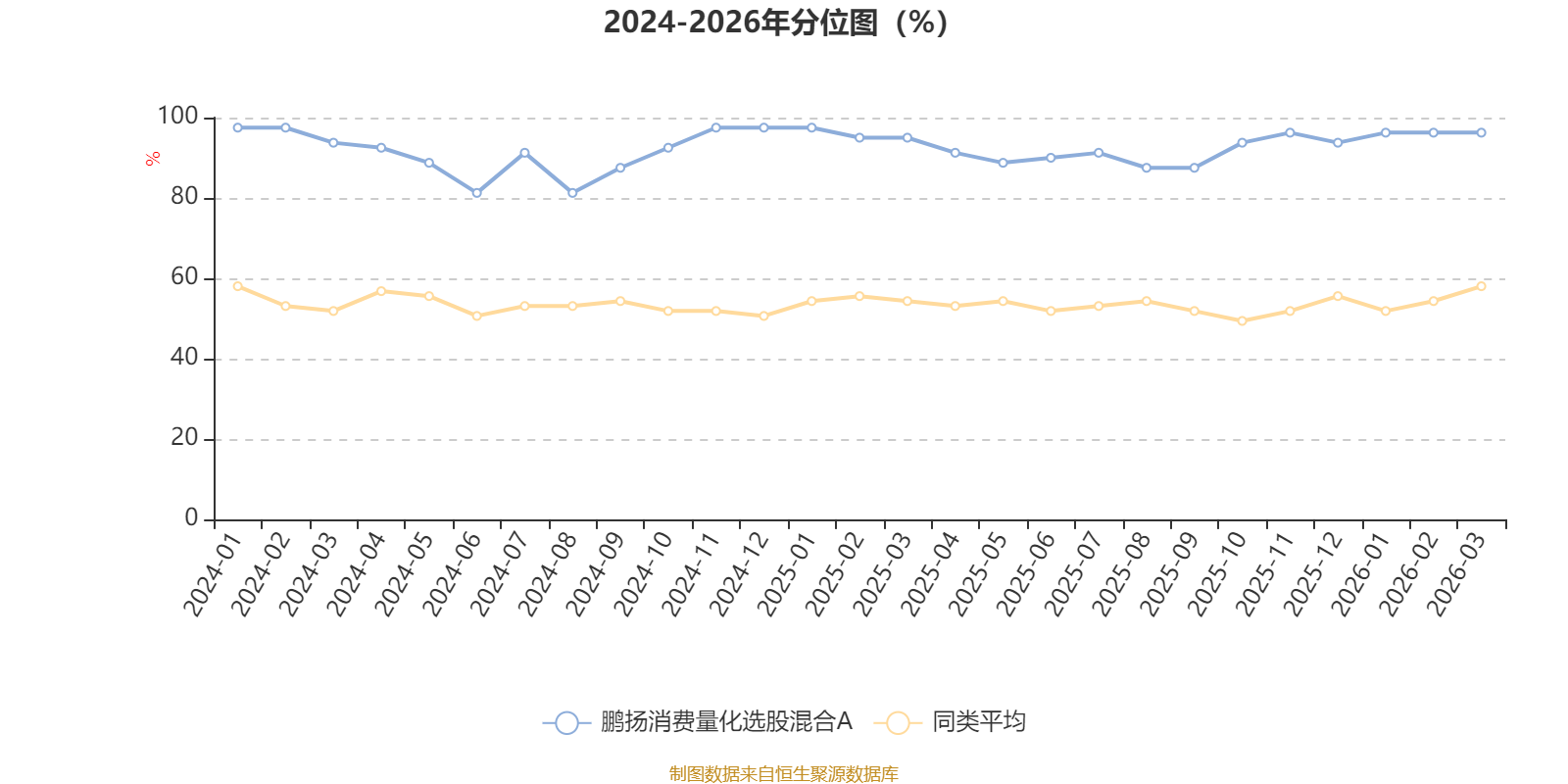 通过所选区间该基金净值增长率分位图,可以观察该基金与同类基金业绩比较情况。图为坐标原点到区间内某时点的净值增长率在同类基金中的分位数。
