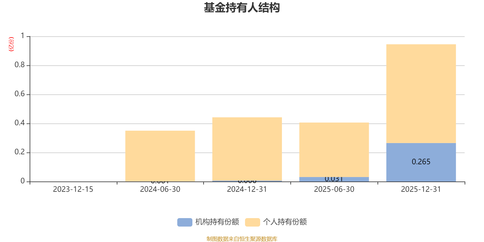 截至2025年12月31日,基金持有人共计4823户,合计持有9447.07万份。其中管理人员工持有216.2万份,占比2.29%,机构持有份额占比28.02%,个人投资者占比71.98%。