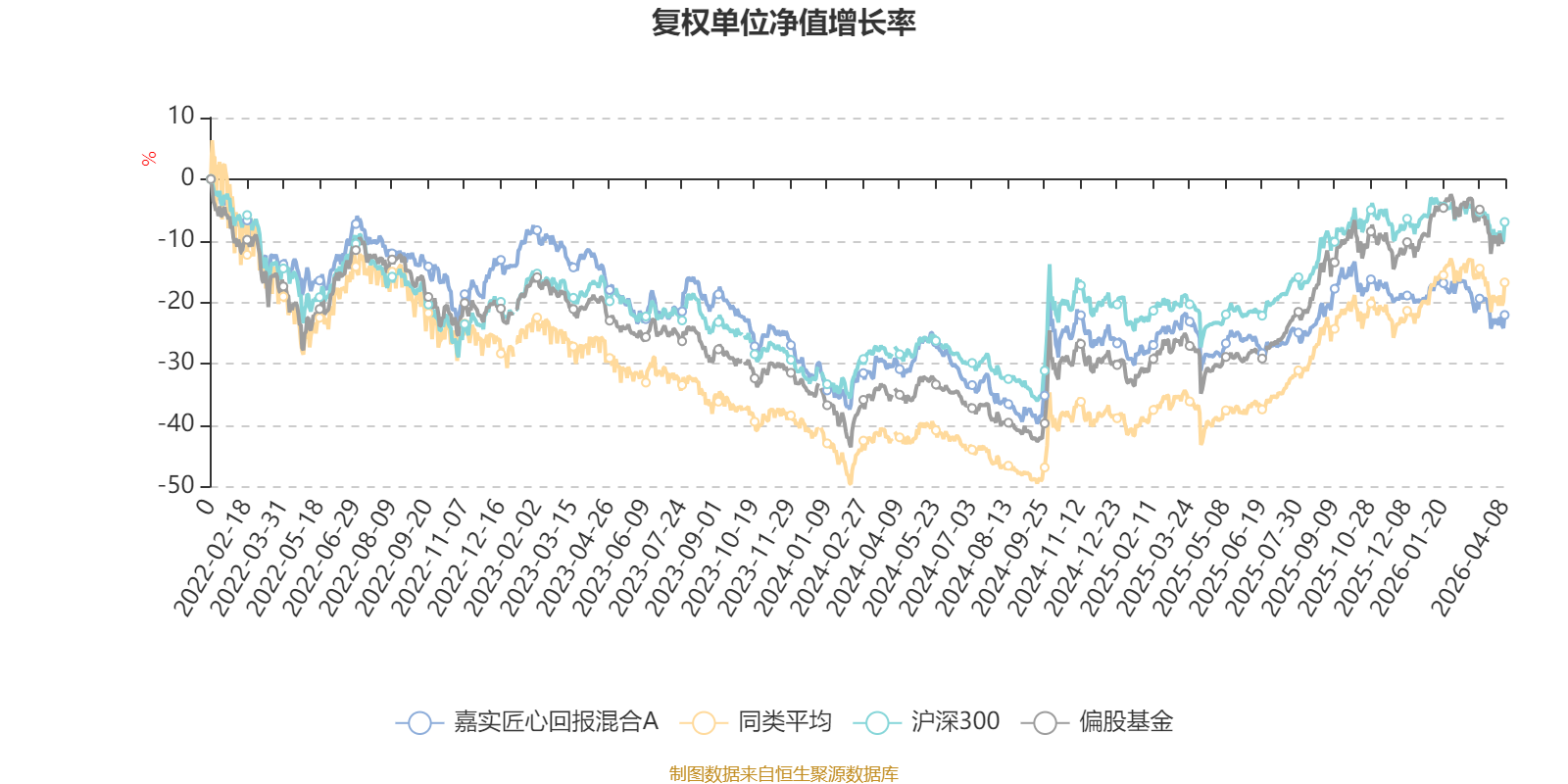截至4月8日,嘉实匠心回报混合A近三个月复权单位净值增长率为-4.79%,位于同类可比基金496/621;近半年复权单位净值增长率为-9.53%,位于同类可比基金544/621;近一年复权单位净值增长率为11.36%,位于同类可比基金572/618;近三年复权单位净值增长率为-11.46%,位于同类可比基金504/559。
