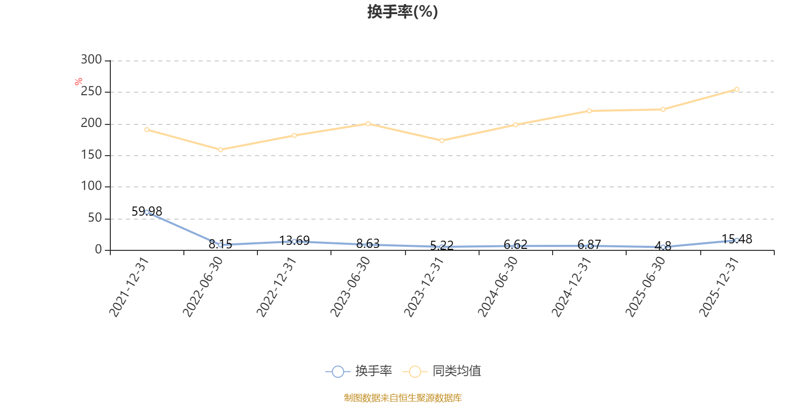 截至2025年12月31日,基金最近一年换手率约20.1%,持续低于同类均值。