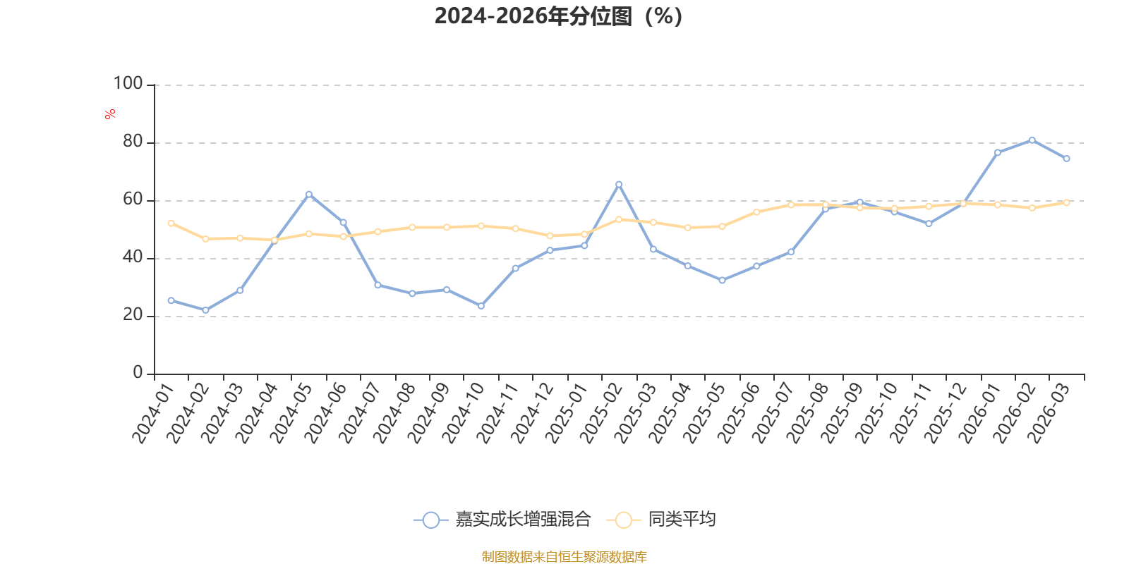 通过所选区间该基金净值增长率分位图,可以观察该基金与同类基金业绩比较情况。图为坐标原点到区间内某时点的净值增长率在同类基金中的分位数。