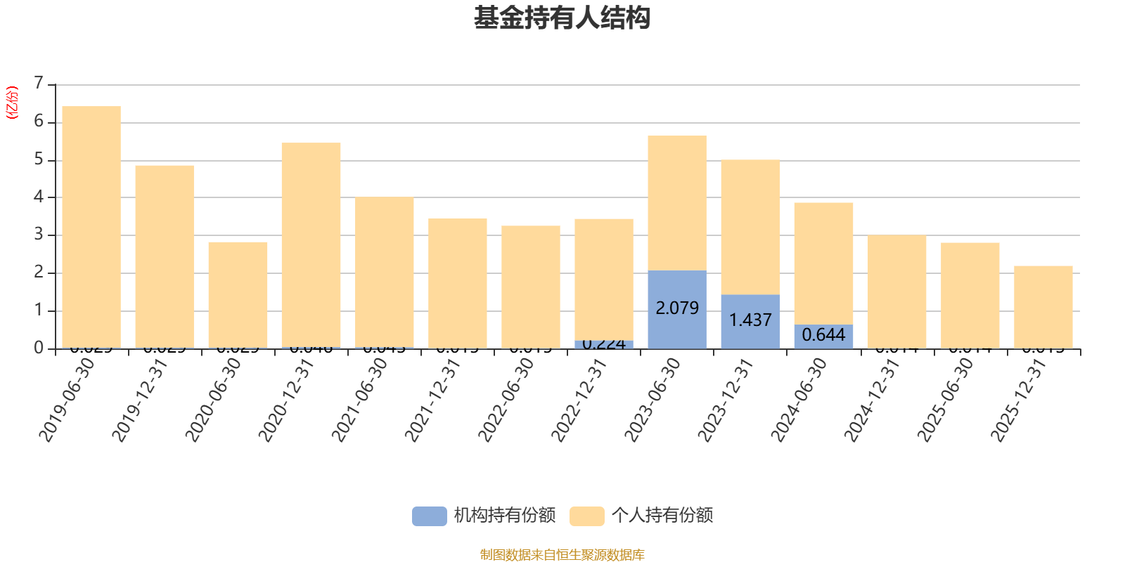 截至2025年12月31日,基金持有人共计1.02万户,合计持有2.19亿份。其中管理人员工持有78.5万份,占比0.36%,机构持有份额占比0.58%,个人投资者占比99.42%。