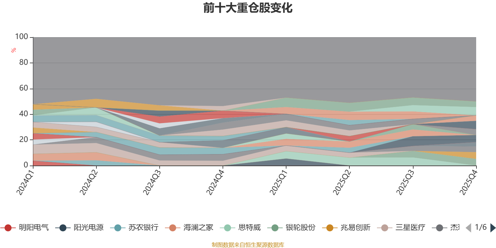 截至2025年末,基金十大重仓股分别是广钢气体、中际旭创、中微公司、兆易创新、银轮股份、宁德时代、杰瑞股份、广联达、江河集团、东方雨虹。