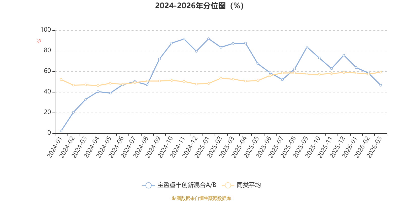 通过所选区间该基金净值增长率分位图,可以观察该基金与同类基金业绩比较情况。图为坐标原点到区间内某时点的净值增长率在同类基金中的分位数。