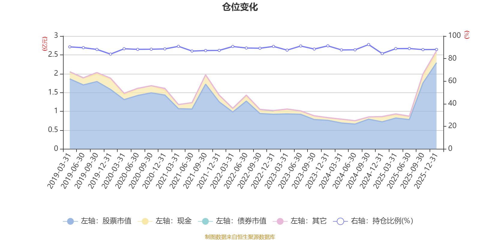 据定期报告数据统计,近三年平均股票仓位为88.7%,同类平均为72.57%。2024年三季度末基金达到92.43%的最高仓位,2019年末最低,为83.99%。