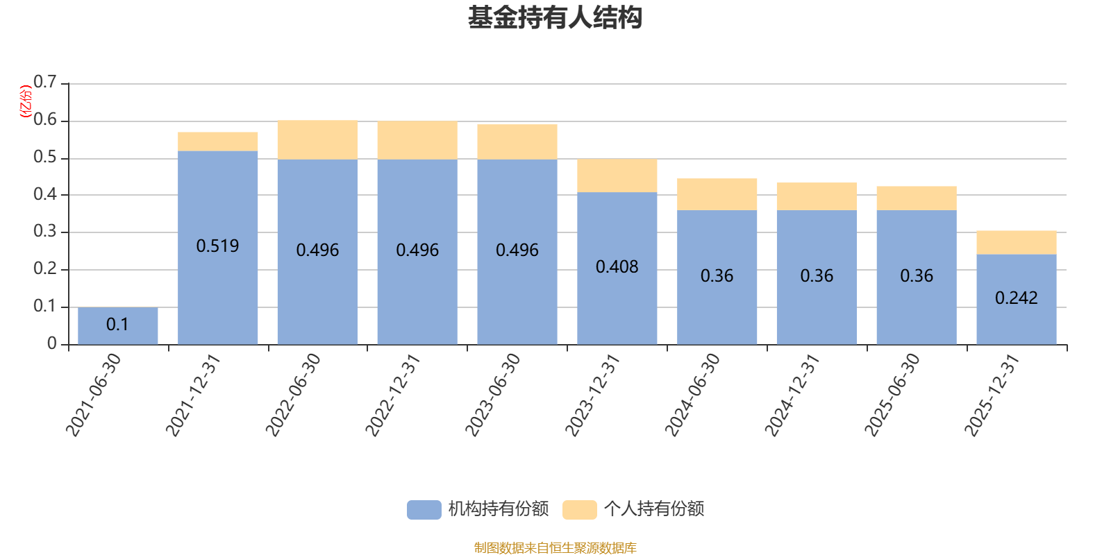 截至2025年12月31日,基金持有人共计751户,合计持有3046.3万份。其中管理人员工持有421.55万份,占比13.84%,机构持有份额占比79.36%,个人投资者占比20.64%。