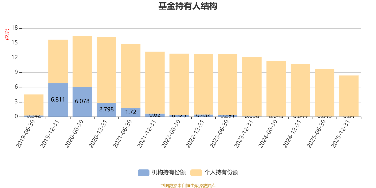 截至2025年12月31日,基金持有人共计11.01万户,合计持有8.38亿份。其中管理人员工持有119.2万份,占比0.14%,机构持有份额占比0.47%,个人投资者占比99.53%。