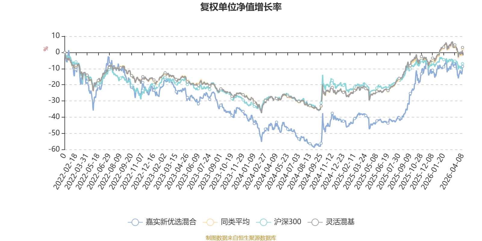 截至4月8日,嘉实新优选混合近三个月复权单位净值增长率为0.78%,位于同类可比基金553/1287;近半年复权单位净值增长率为4.16%,位于同类可比基金543/1286;近一年复权单位净值增长率为72.59%,位于同类可比基金186/1286;近三年复权单位净值增长率为18.99%,位于同类可比基金517/1286。