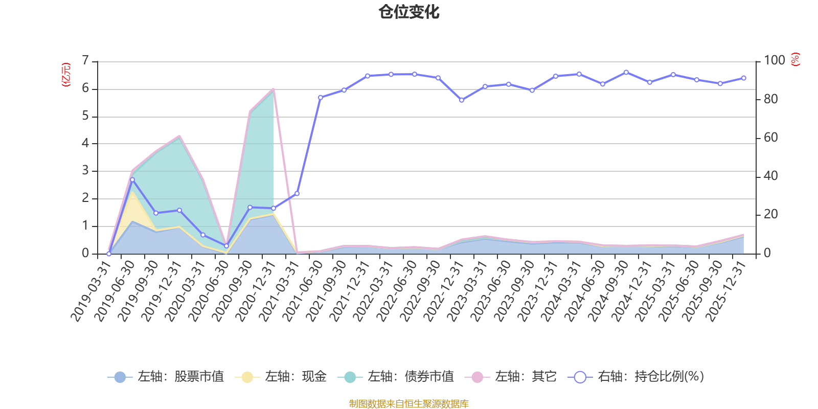 据定期报告数据统计,近三年平均股票仓位为90.06%,同类平均为72.57%。2024年三季度末基金达到94.31%的最高仓位,2020年上半年末最低,为4.12%。