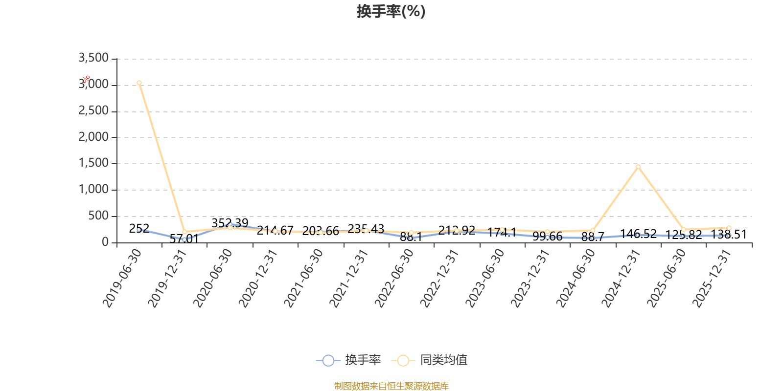 截至2025年12月31日,基金最近一年换手率约253.2%,持续4年低于同类均值。