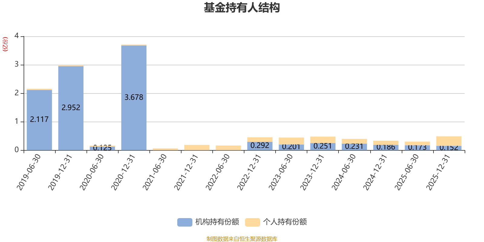 截至2025年12月31日,基金持有人共计2207户,合计持有4880.74万份。其中管理人员工持有361.57万份,占比7.41%,机构持有份额占比31.10%,个人投资者占比68.90%。