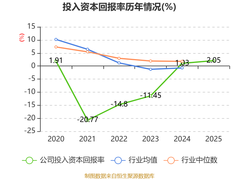 数据显示,2025年公司加权平均净资产收益率为3.03%,较上年同期上升0.03个百分点。公司2025年投入资本回报率为2.05%,较上年同期上升1.02个百分点。