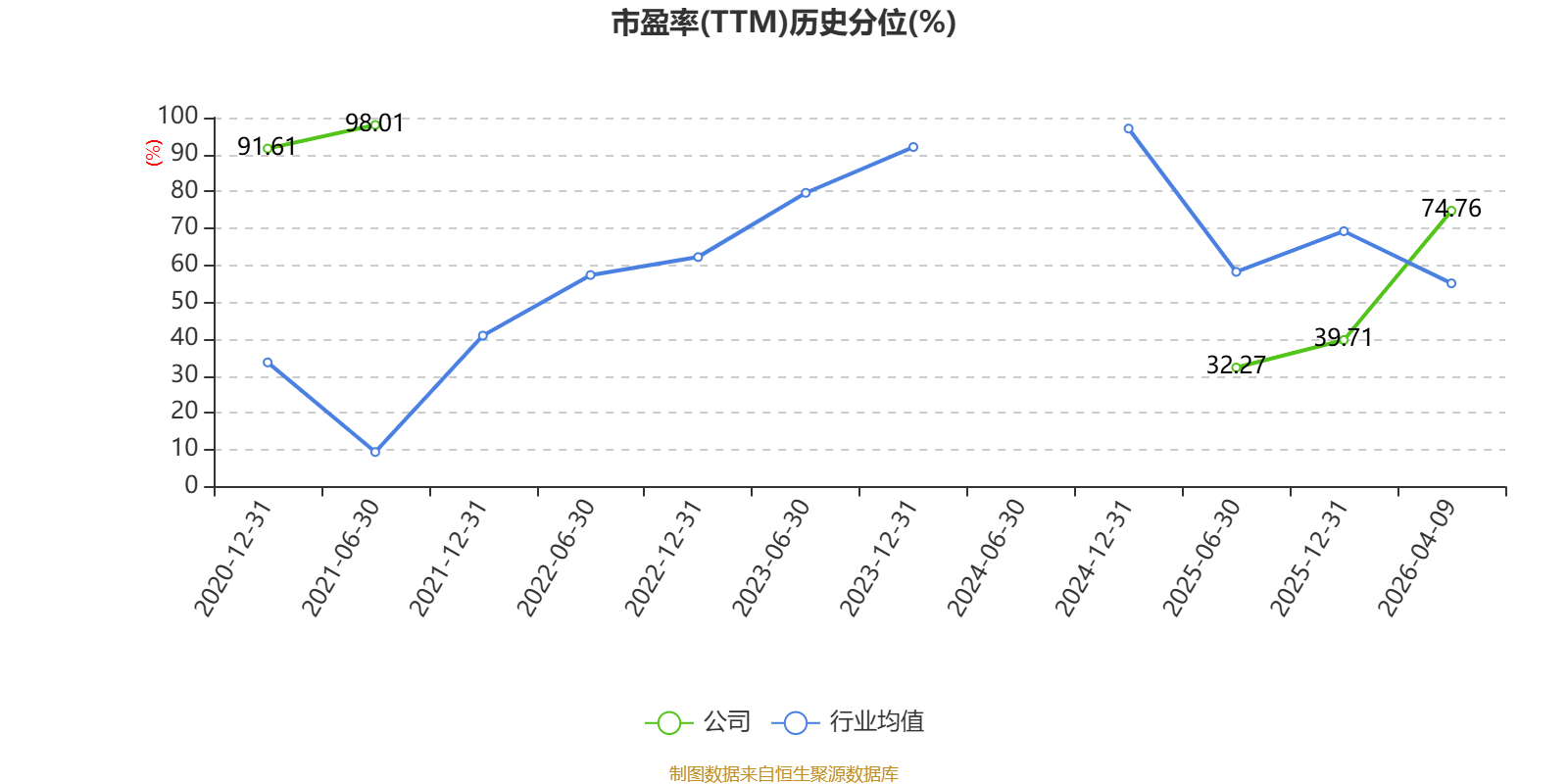 市盈率、市净率为负时,不显示当期分位数,会导致折线图中断。