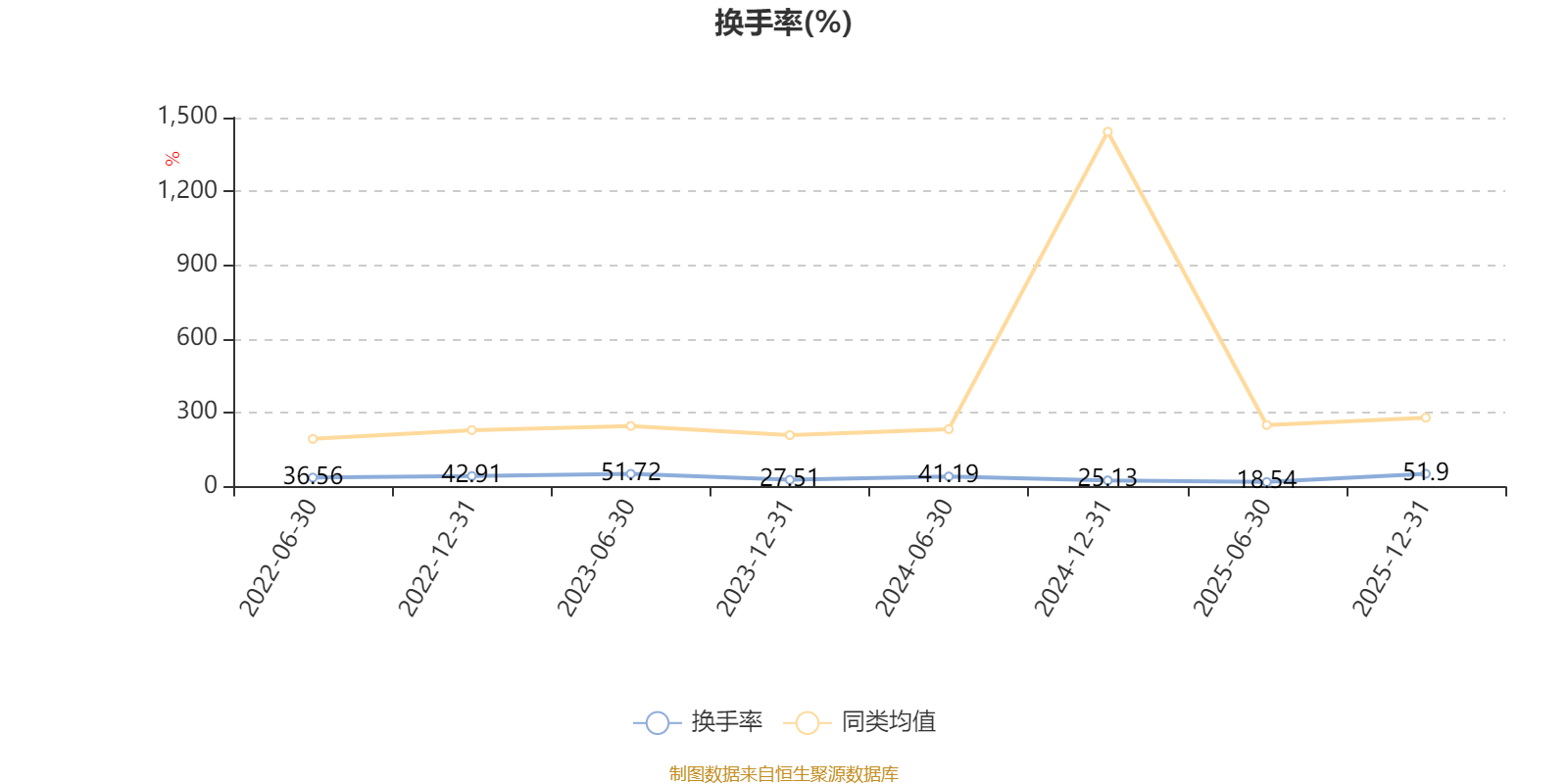 截至2025年12月31日,基金最近一年换手率约68.52%,持续低于同类均值。