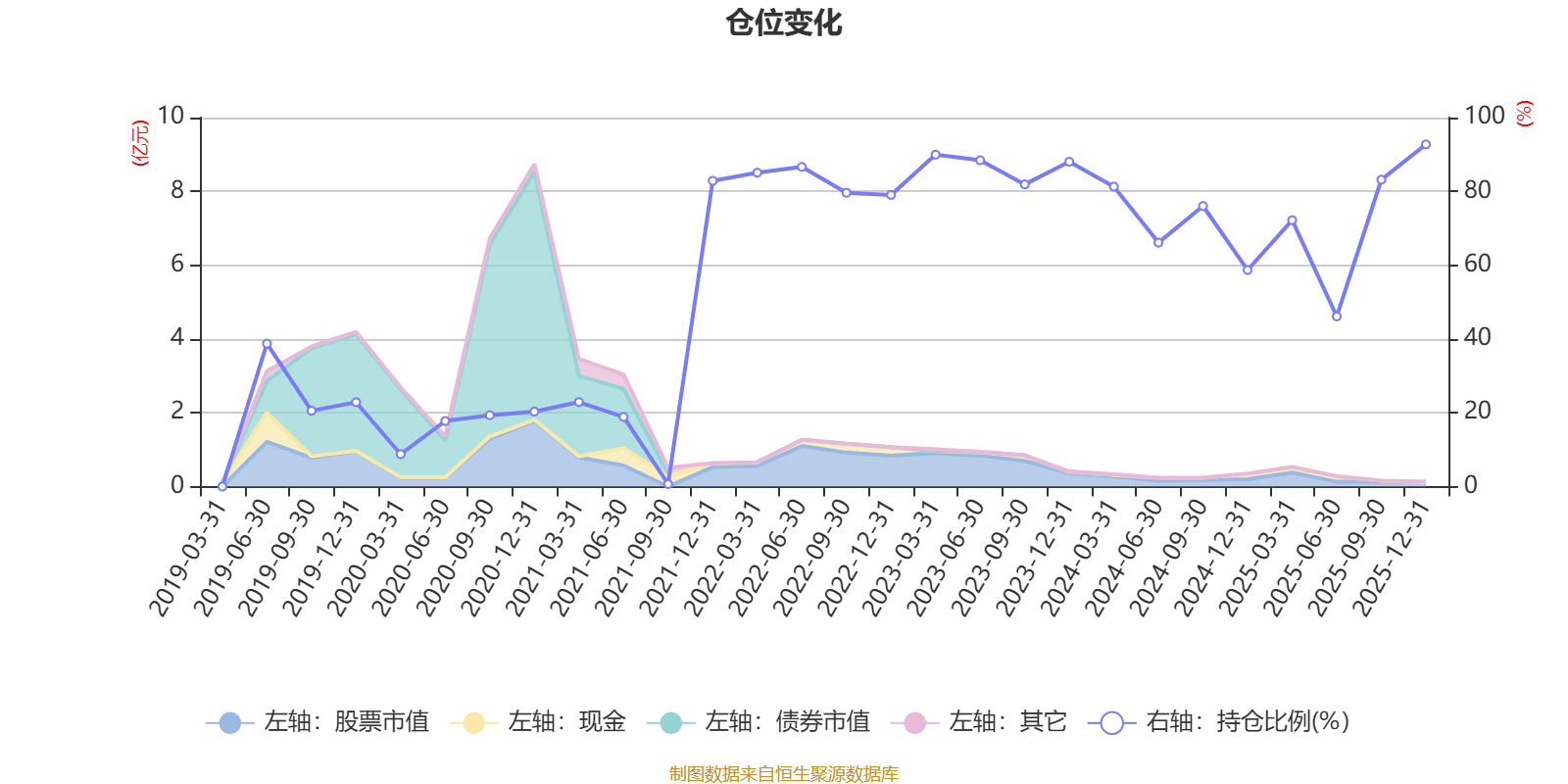 据定期报告数据统计,近三年平均股票仓位为77.06%,同类平均为72.57%。2025年末基金达到92.73%的最高仓位,2021年三季度末最低,为0.68%。