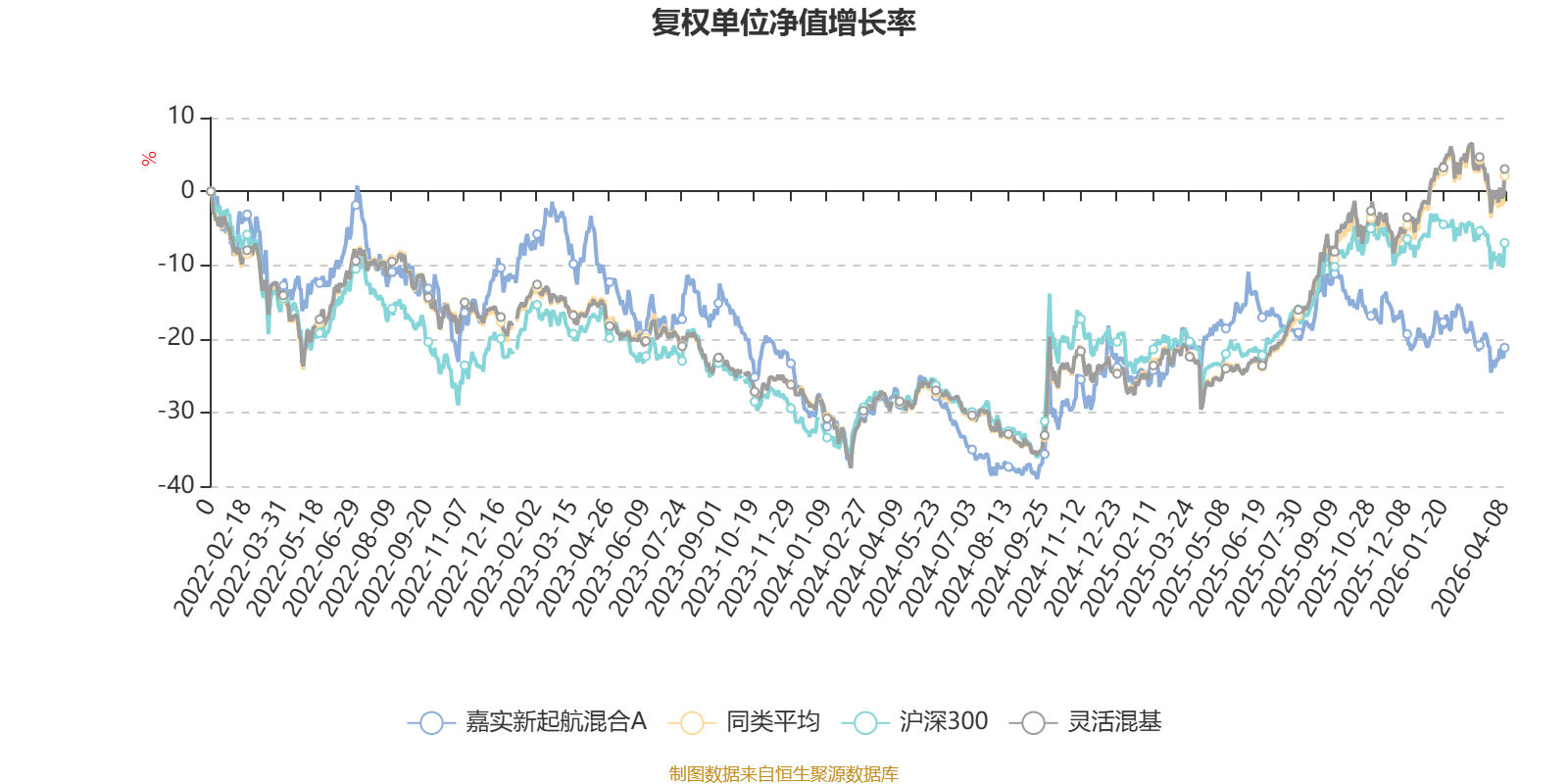 截至4月8日,嘉实新起航混合A近三个月复权单位净值增长率为-2.62%,位于同类可比基金924/1287;近半年复权单位净值增长率为-7.26%,位于同类可比基金1128/1286;近一年复权单位净值增长率为0.94%,位于同类可比基金1253/1286;近三年复权单位净值增长率为-17.11%,位于同类可比基金1182/1286。
