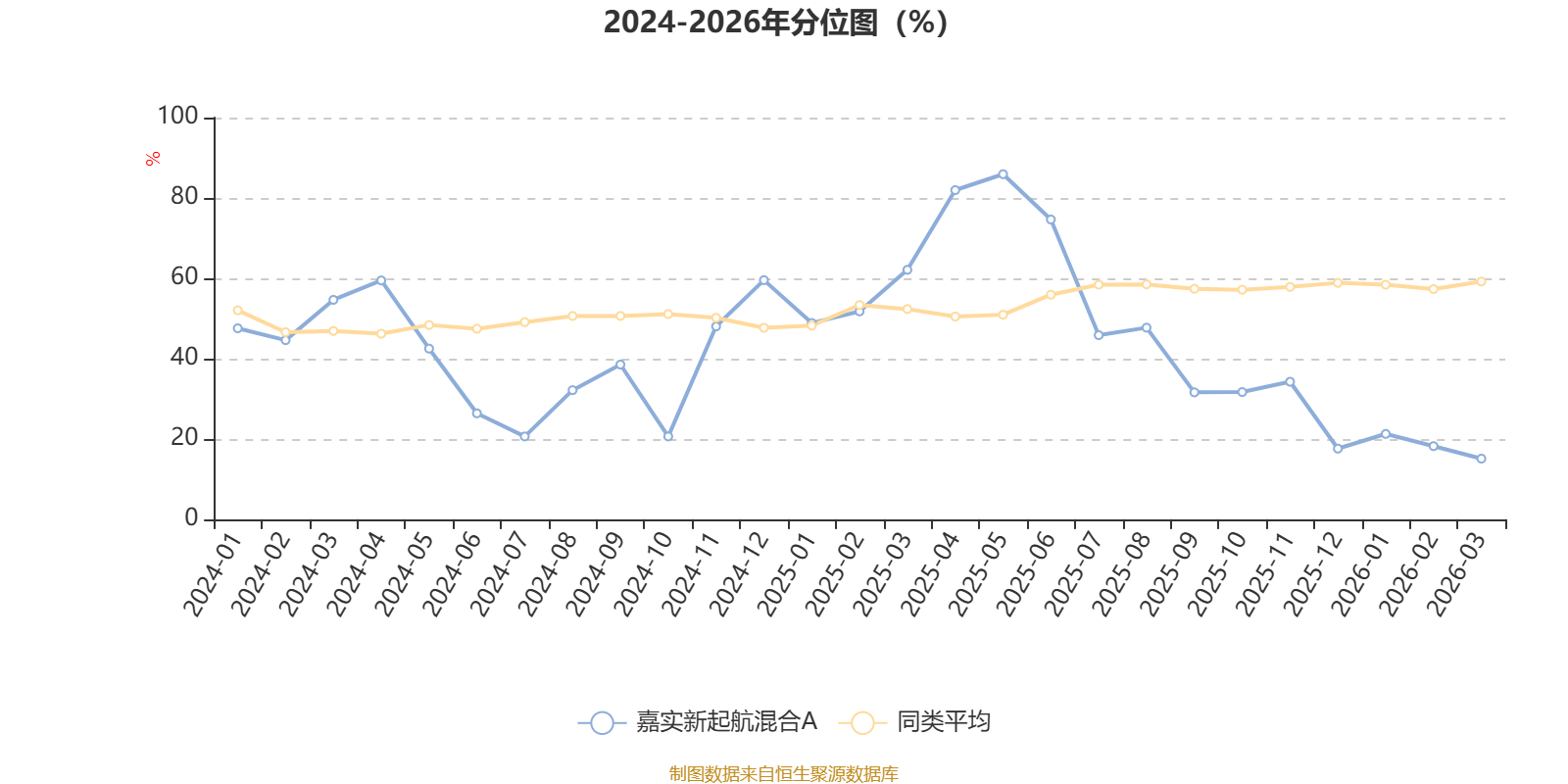 通过所选区间该基金净值增长率分位图,可以观察该基金与同类基金业绩比较情况。图为坐标原点到区间内某时点的净值增长率在同类基金中的分位数。