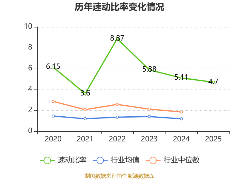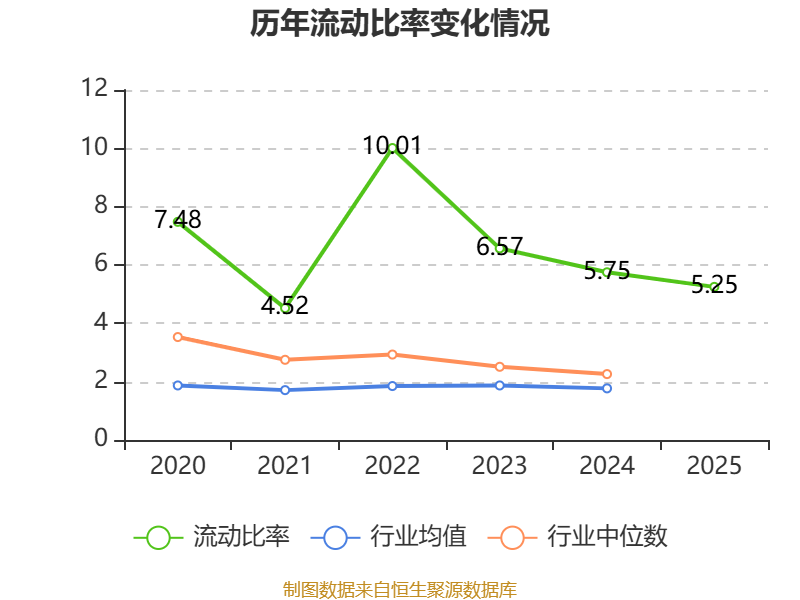 2025年,公司流动比率为5.25,速动比率为4.7。
