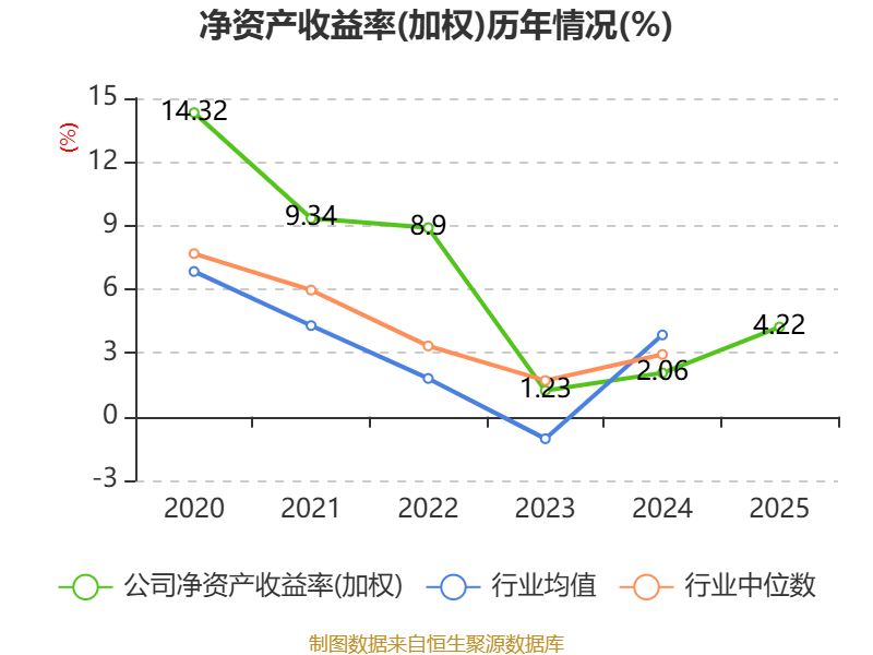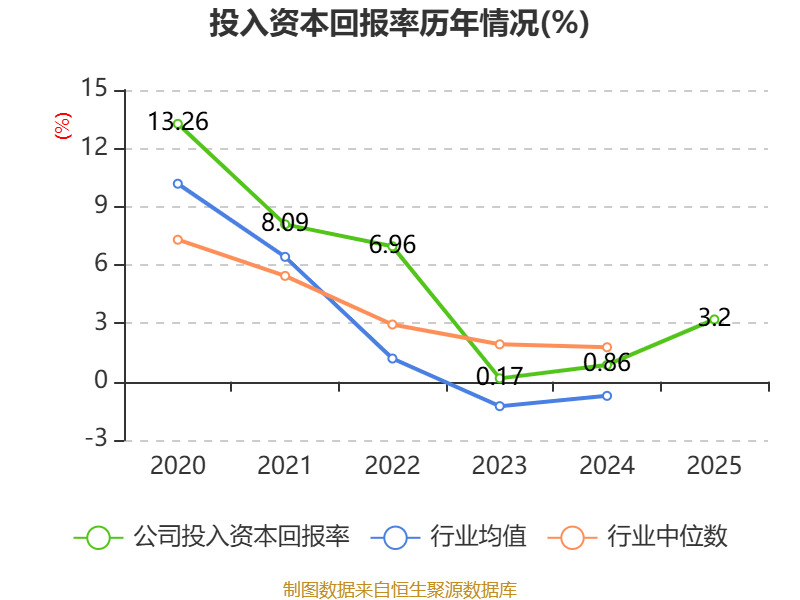 数据显示,2025年公司加权平均净资产收益率为4.22%,较上年同期上升2.16个百分点。公司2025年投入资本回报率为3.2%,较上年同期上升2.34个百分点。