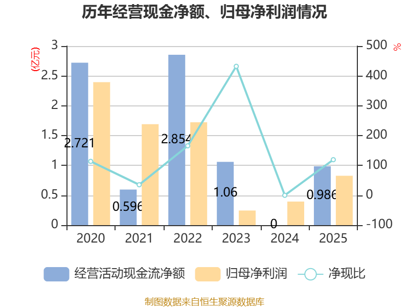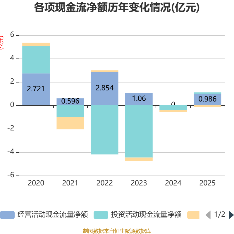 截至2025年,公司经营活动现金流净额为9864.7万元,同比增加9866.54万元;筹资活动现金流净额-1317.18万元,同比增加819.82万元;投资活动现金流净额1152.93万元,上年同期为-3824.03万元。