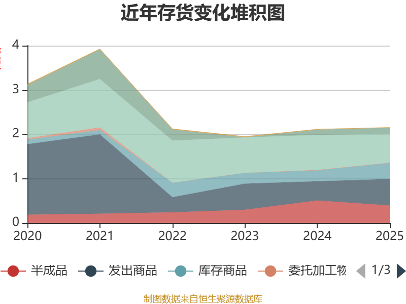 从存货变动来看,截至2025年末,公司存货账面价值为2.16亿元,占净资产的10.88%,较上年末增加407.6万元。其中,存货跌价准备为3417.88万元,计提比例为13.67%。