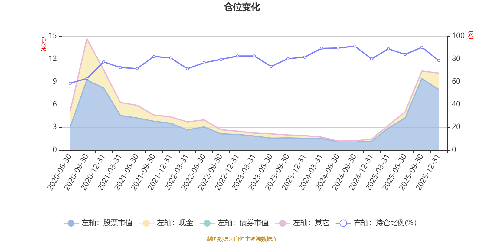 据定期报告数据统计,近三年平均股票仓位为84.25%,同类平均为85.83%。2024年三季度末基金达到91.33%的最高仓位,2020年上半年末最低,为58.79%。