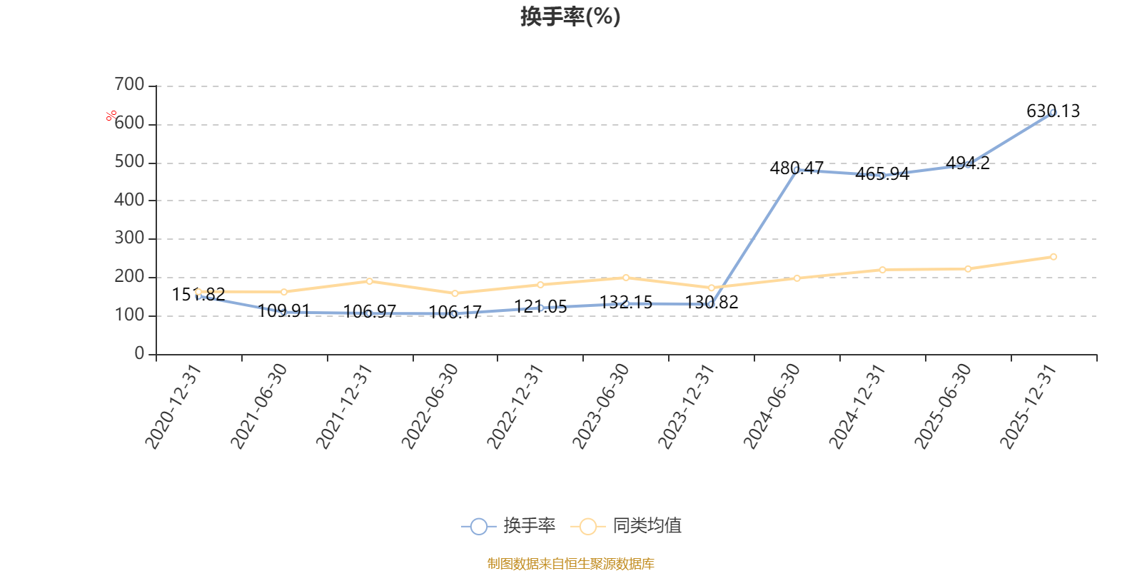 截至2025年12月31日,基金最近一年换手率约1149.8%,持续2年高于同类均值。