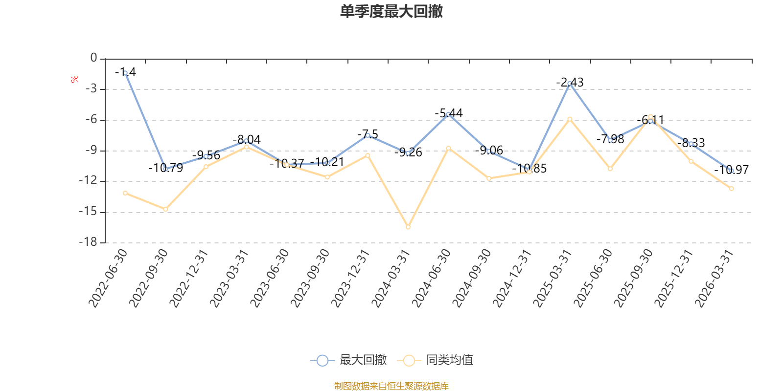 截至4月8日,基金近三年最大回撤为26.09%,同类可比基金排名102/550。单季度最大回撤出现在2026年一季度,为10.97%。