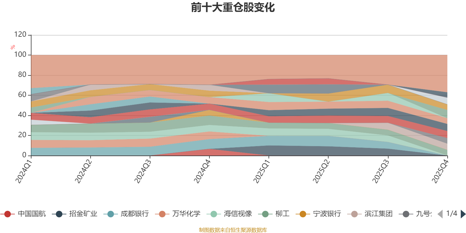 该基金持股集中度较高,近2年前十大重仓股集中度长期超过60%。截至2025年末,基金十大重仓股分别是中国海洋石油、纽威股份、亿联网络、中国铝业、滨江集团、海丰国际、柳工、九号公司、常熟银行、紫金黄金国际。