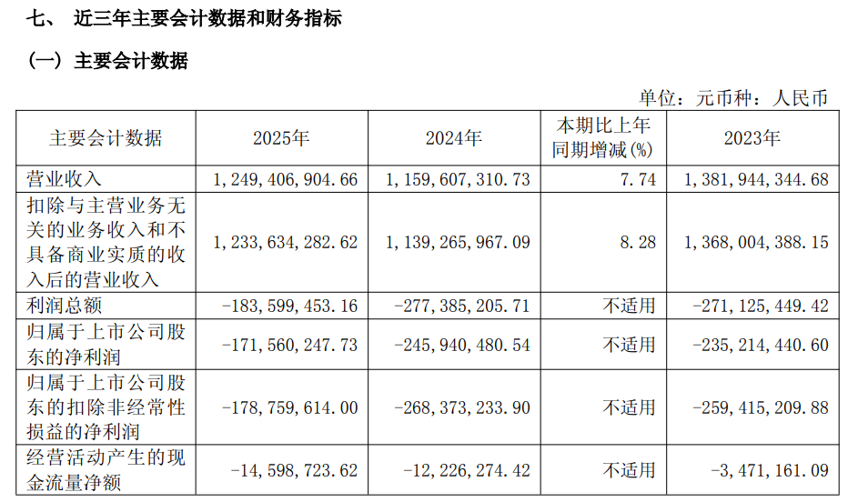 4月9日晚间,航天长峰(600855)公布2025年年报,公司营业收入为12.49亿元,同比上升7.74%;归母净利润自去年同期亏损2.46亿元变为亏损1.72亿元,亏损额有所减少;扣非归母净利润自去年同期亏损2.68亿元变为亏损1.79亿元,亏损额有所减少。