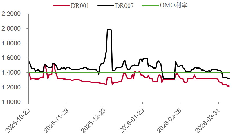 资金面方面,跨季前后,市场流动性始终保持宽松。自4月1日起,央行逆回购的单日续作规模迅速降至5亿~10亿元的低位,但资金价格反而逆势下行。截至4月8日,DR001与DR007分别回落至1.22%和1.32%,市场资金面呈现出极为宽松的状态。