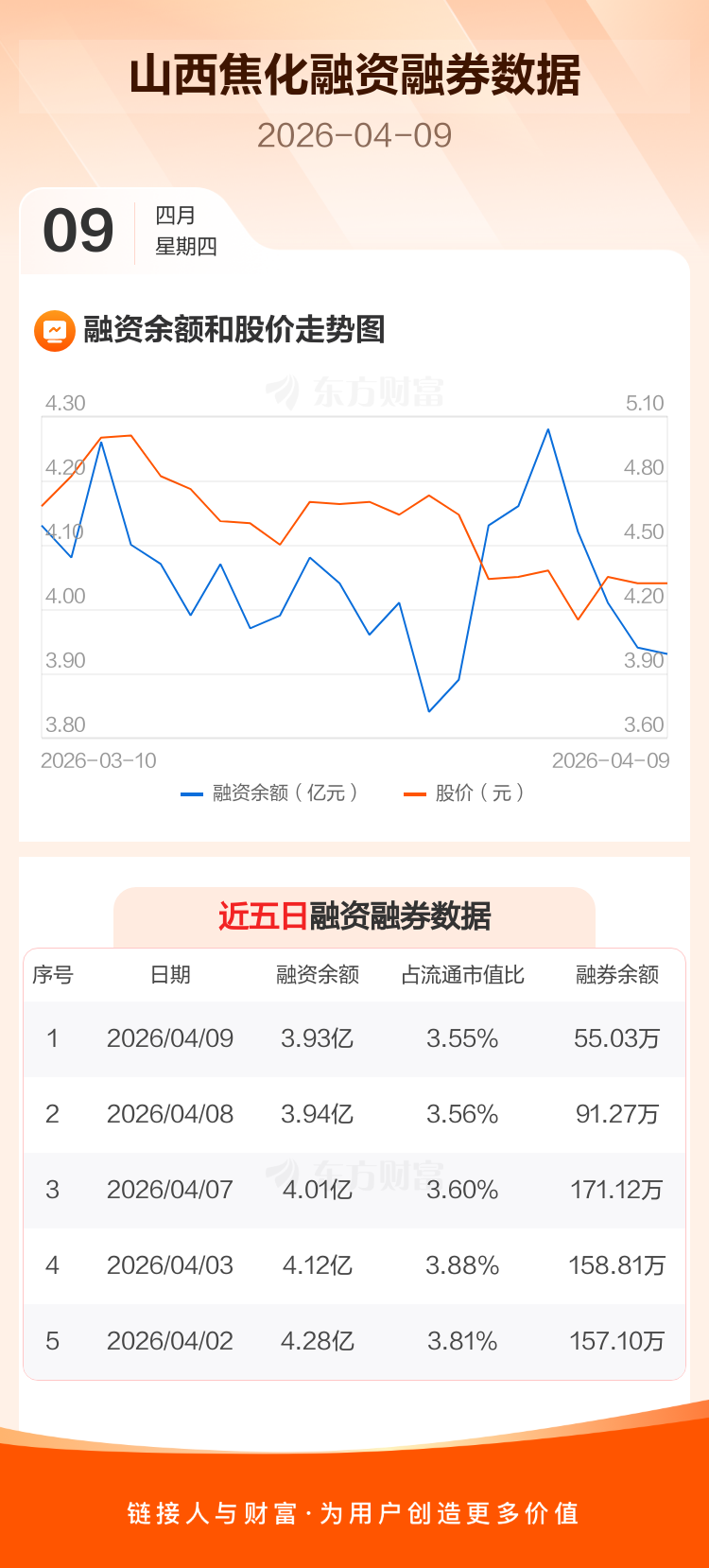 交易所最新数据显示,山西焦化于2026年4月9日获融资买入1501.97万元,融资偿还1652.34万元,当日融资净偿还150.37万元。目前,该股融资余额3.93亿,占流通市值比例为3.55%。