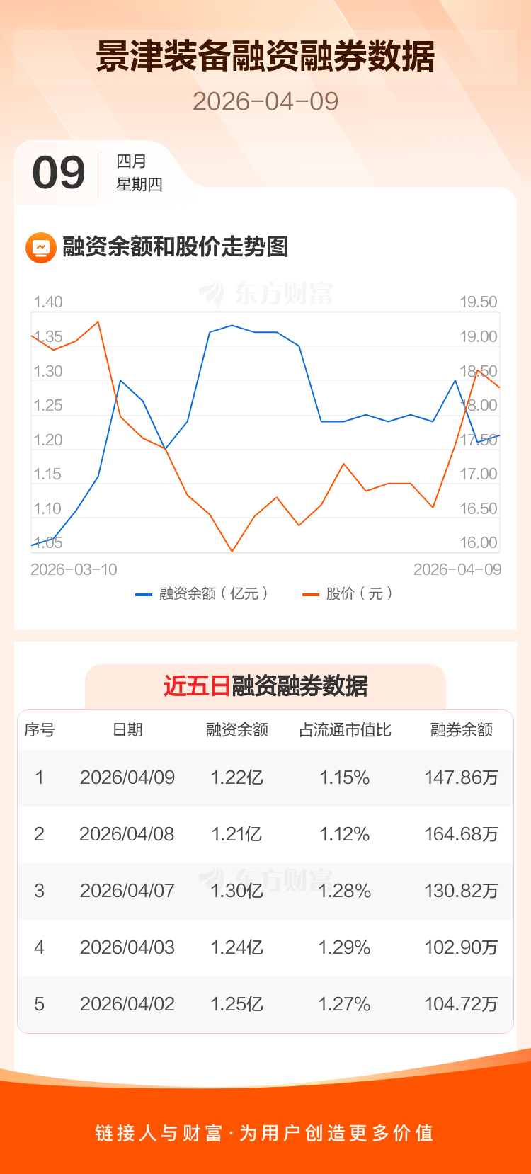 交易所最新数据显示,景津装备于2026年4月9日获融资买入1205.47万元,融资偿还1097.95万元,当日融资净买入107.52万元。目前,该股融资余额1.22亿,占流通市值比例为1.15%。