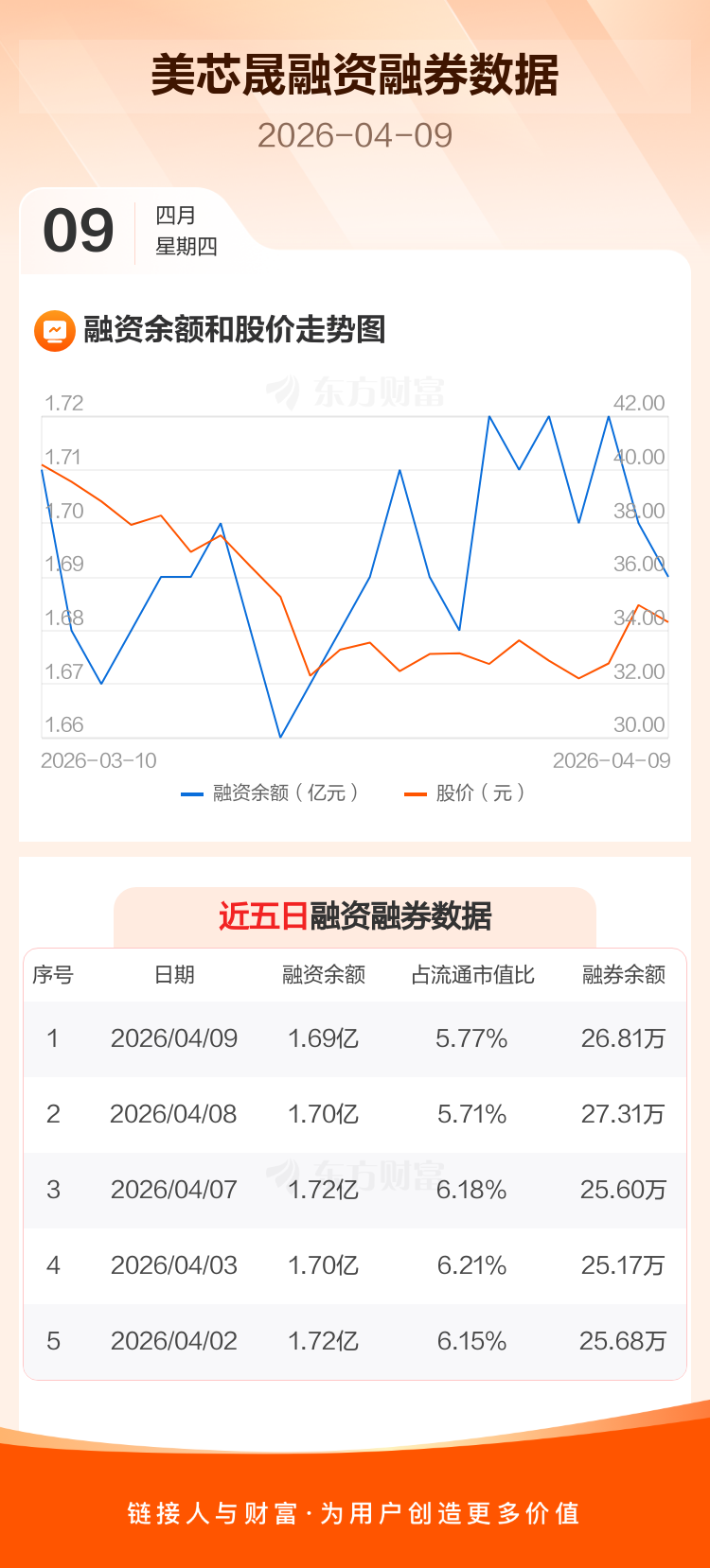 交易所最新数据显示,美芯晟于2026年4月9日获融资买入412.44万元,融资偿还534.57万元,当日融资净偿还122.13万元。目前,该股融资余额1.69亿,占流通市值比例为5.77%。