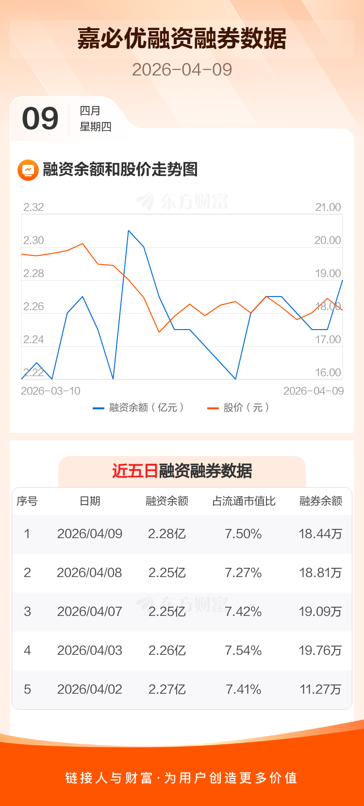 交易所最新数据显示,嘉必优于2026年4月9日获融资买入577.36万元,融资偿还298.08万元,当日融资净买入279.27万元。目前,该股融资余额2.28亿,占流通市值比例为7.50%。