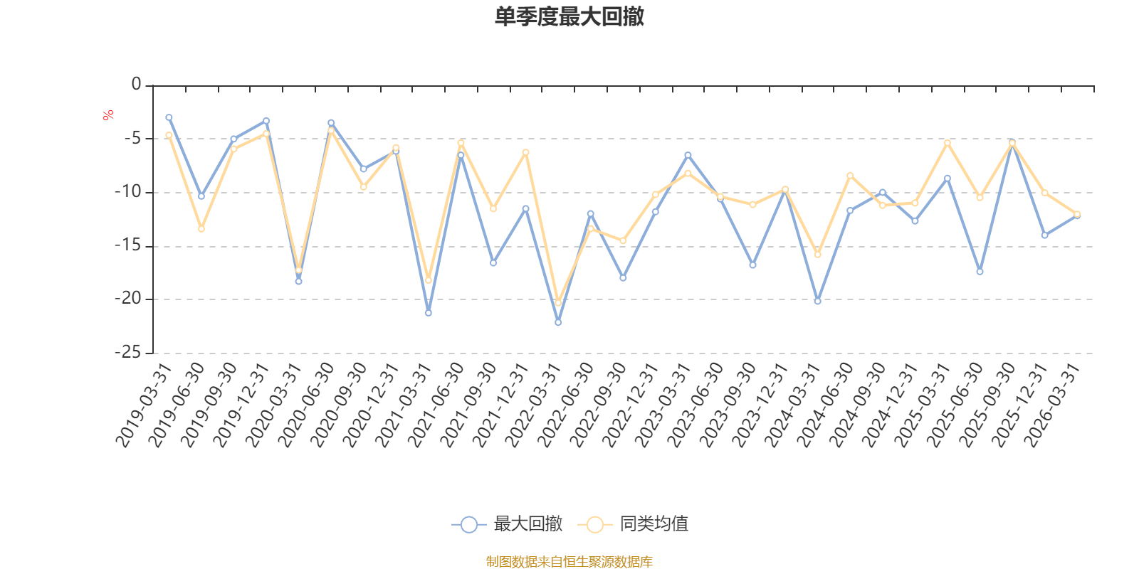 通过所选区间该基金净值增长率分位图,可以观察该基金与同类基金业绩比较情况。图为坐标原点到区间内某时点的净值增长率在同类基金中的分位数。