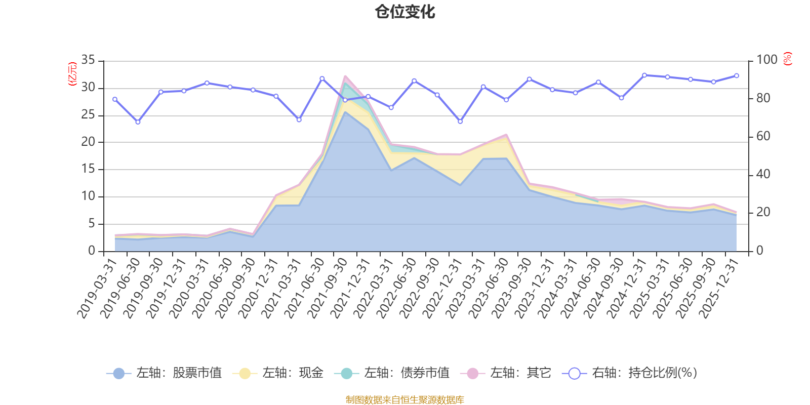 据定期报告数据统计,近三年平均股票仓位为87.39%,同类平均为86.12%。2024年末基金达到92.41%的最高仓位,2019年上半年末最低,为67.84%。