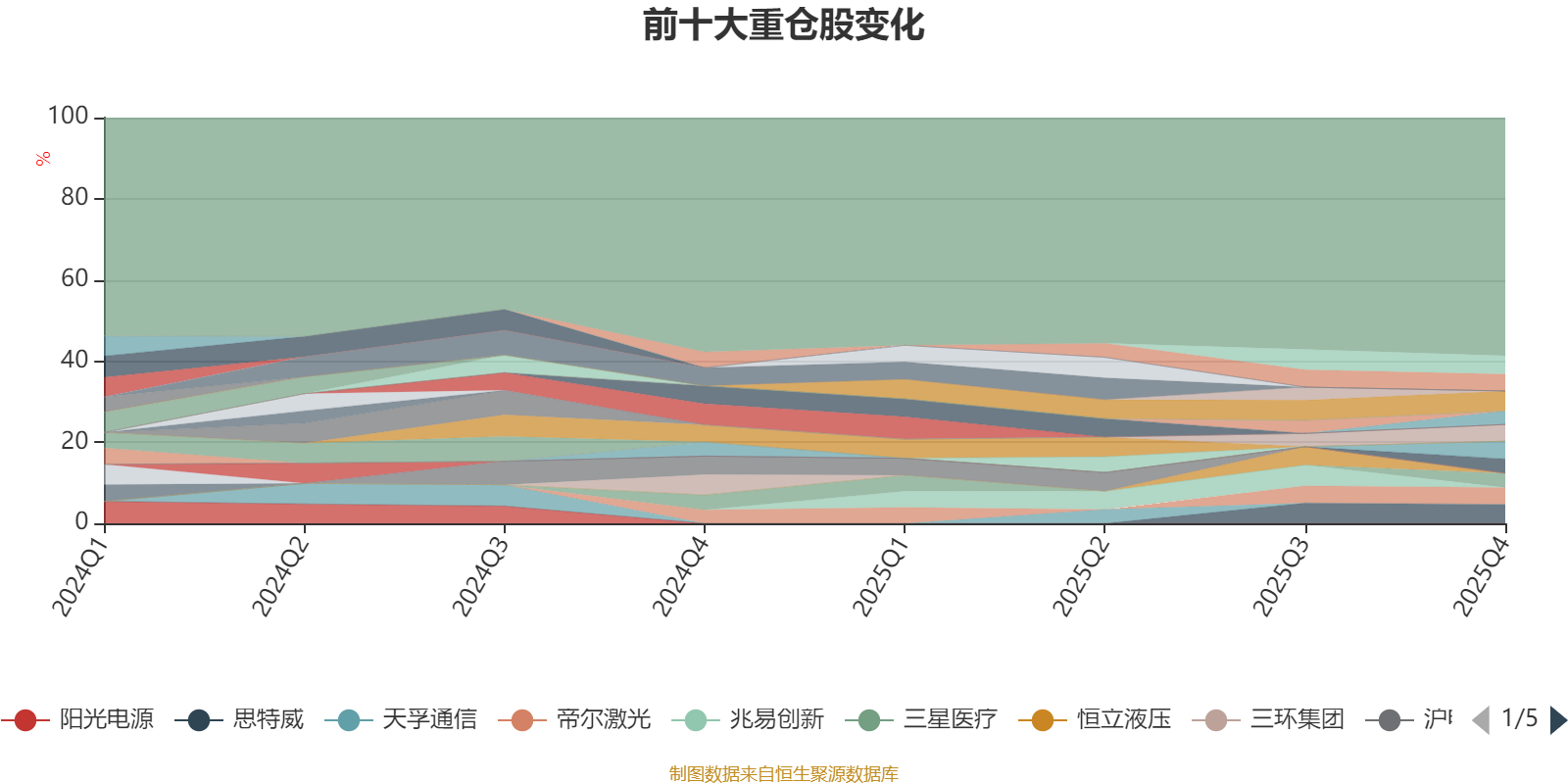 截至2025年末,基金十大重仓股分别是晶方科技、思特威、长源东谷、海兴电力、帝尔激光、通威股份、普利特、力星股份、三星医疗、唯科科技。