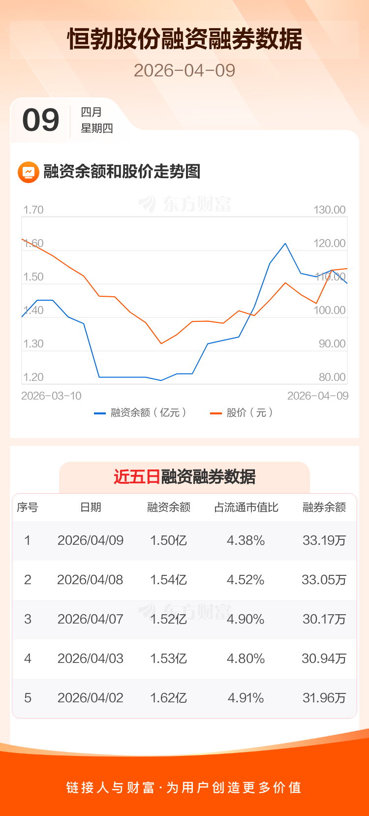 交易所最新数据显示,恒勃股份于2026年4月9日获融资买入2862.41万元,融资偿还3276.44万元,当日融资净偿还414.03万元。目前,该股融资余额1.50亿,占流通市值比例为4.38%。