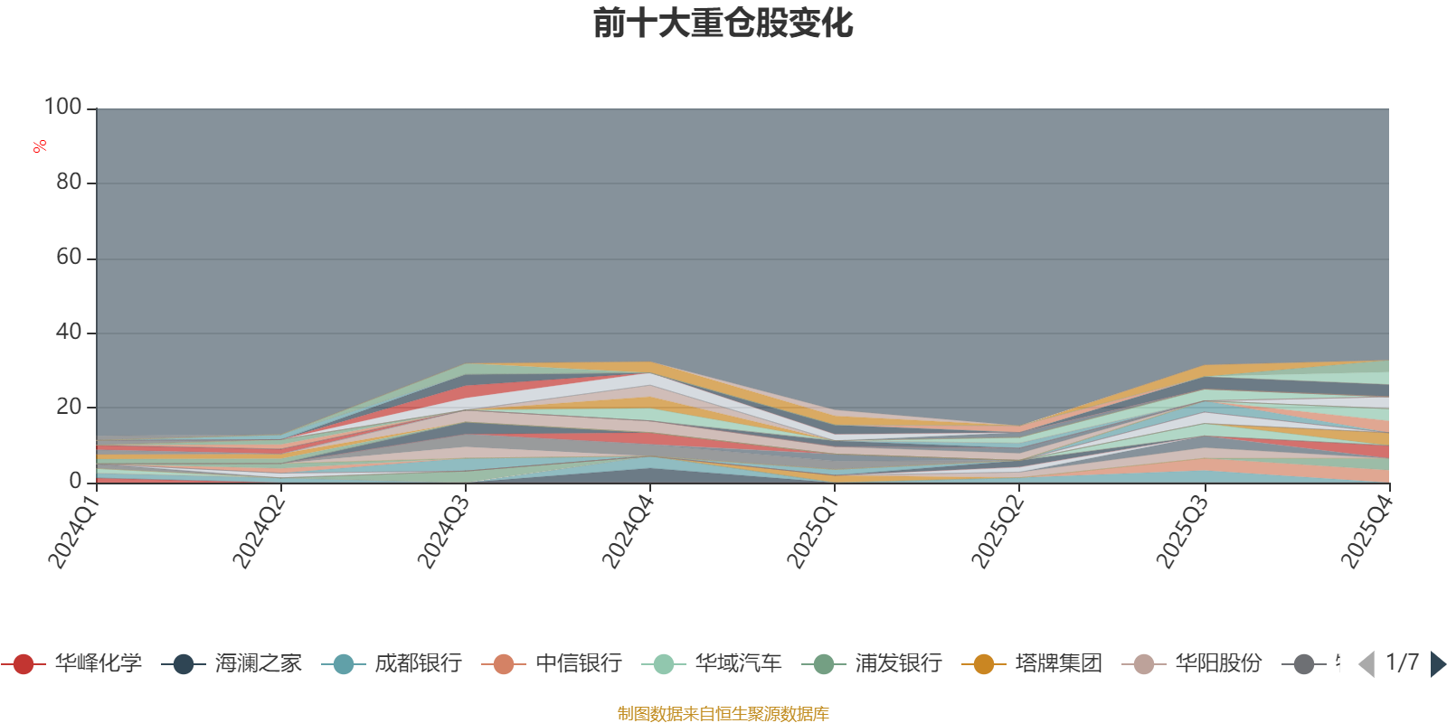 截至2025年末,基金十大重仓股分别是鲁西化工、中国平安、中信银行、厦门象屿、中国石化、中谷物流、建设银行、沪农商行、中国石油、浦发银行。