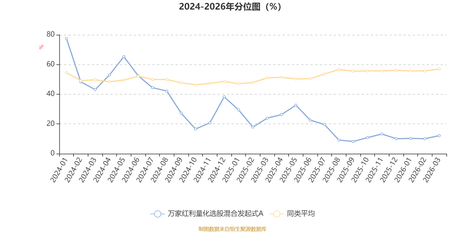 通过所选区间该基金净值增长率分位图,可以观察该基金与同类基金业绩比较情况。图为坐标原点到区间内某时点的净值增长率在同类基金中的分位数。