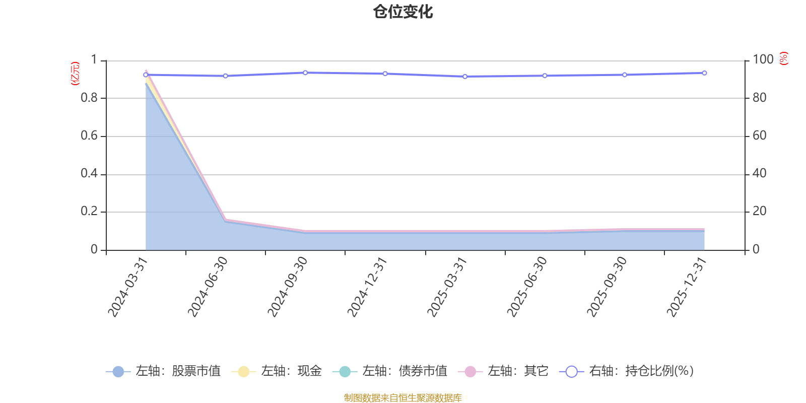 据定期报告数据统计,基金股票仓位长期保持较高水平,成立以来平均股票仓位为92.53%,同类平均为84.04%。2024年三季度末基金达到93.54%的最高仓位,2025年一季度末最低,为91.53%。