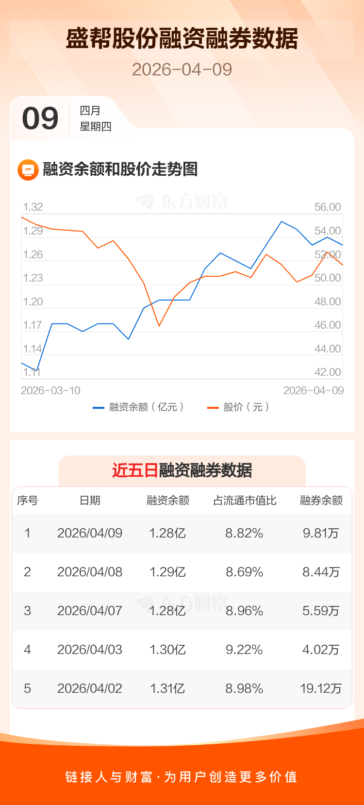交易所最新数据显示,盛帮股份于2026年4月9日获融资买入248.01万元,融资偿还325.50万元,当日融资净偿还77.49万元。目前,该股融资余额1.28亿,占流通市值比例为8.82%。