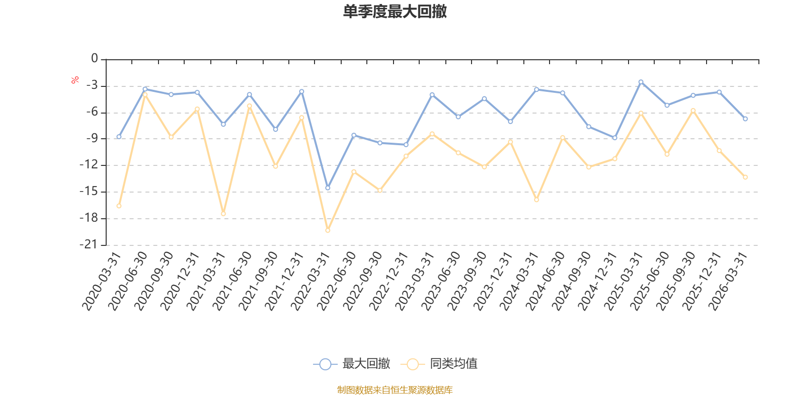 截至4月8日,基金近三年最大回撤为10.66%,同类可比基金排名2/392。单季度最大回撤出现在2022年一季度,为14.53%。